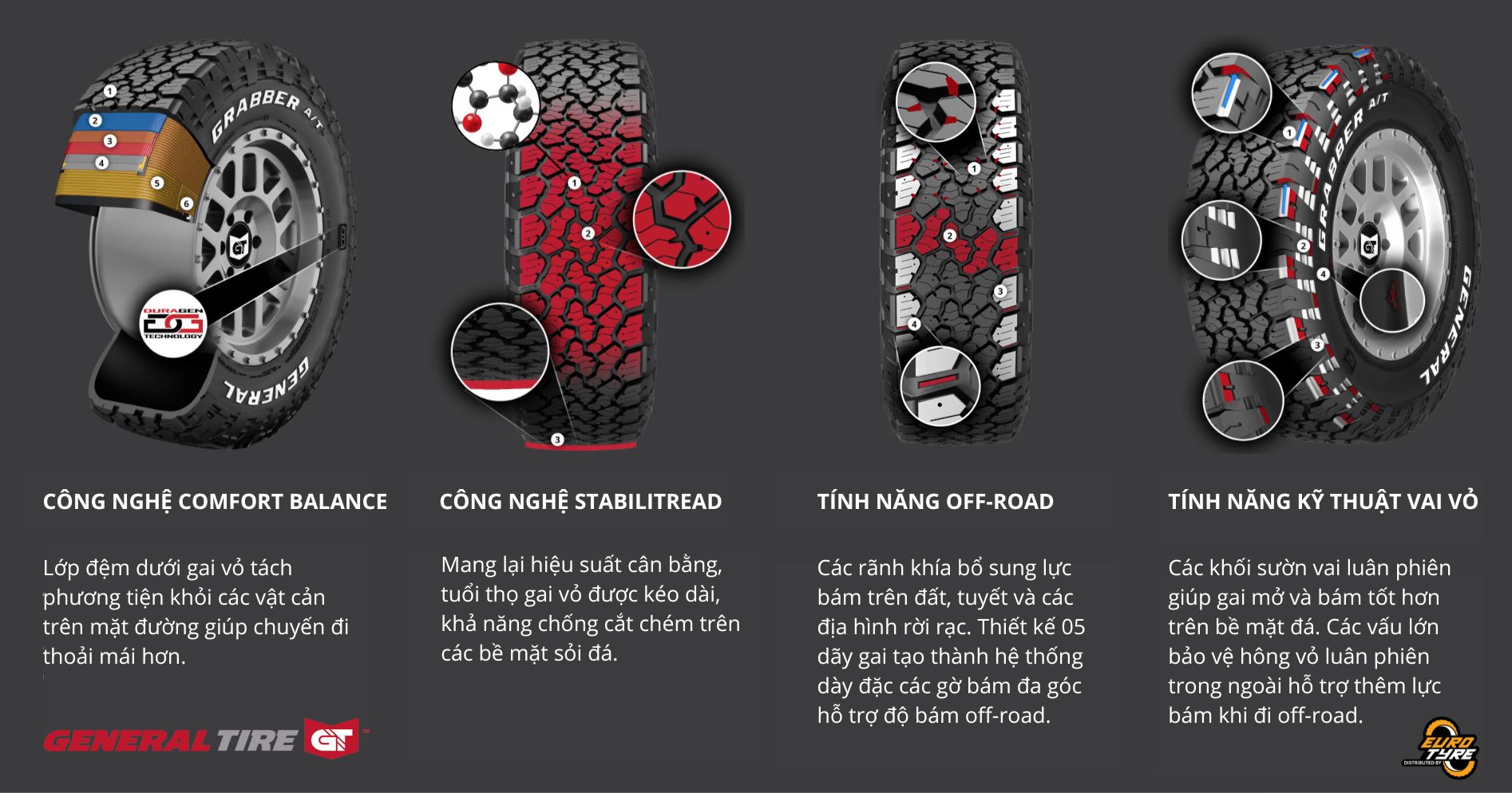 Các tính năng chính Grabber ATX được xây dựng với một số công nghệ độc quyền của General Tire để mang lại hiệu suất đặc trưng, riêng có của bản thân - ĐẶC TÍNH CỦA GRABBER ATX.